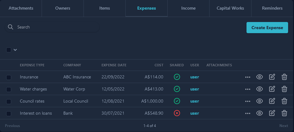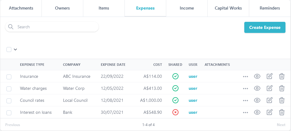 Including owner details, expenses, income, capital works and create reminders for scheduled activities or expiry dates.